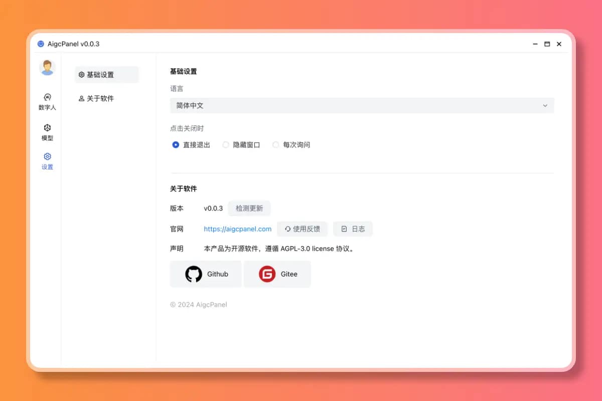 AigcPanel 是一个简单易用的一站式AI数字人系统,小白也可使用。 支持视频合成、声音合成、声音克隆,简化本地模型管理、一键导入和使用AI模型。 系统基于 TypeScript 开发,跨平台兼容,遵循 AGPL-3.0 协议,适合小白用户和专业开发者使用。