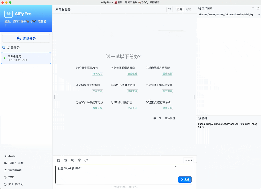 AiPy,中文名爱派,北京知道创宇公司推出的一款 Agent,通过深度融合大语言模型(LLM)与 Python 编程能力,实现任务规划、执行到优化的全链路闭环,本地Manus、国内能用、内网能用,开源免费