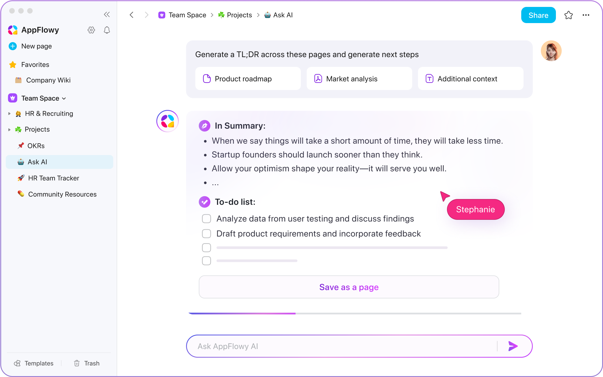 - 启动 AppFlowy,创建工作空间存储文档、任务和项目。