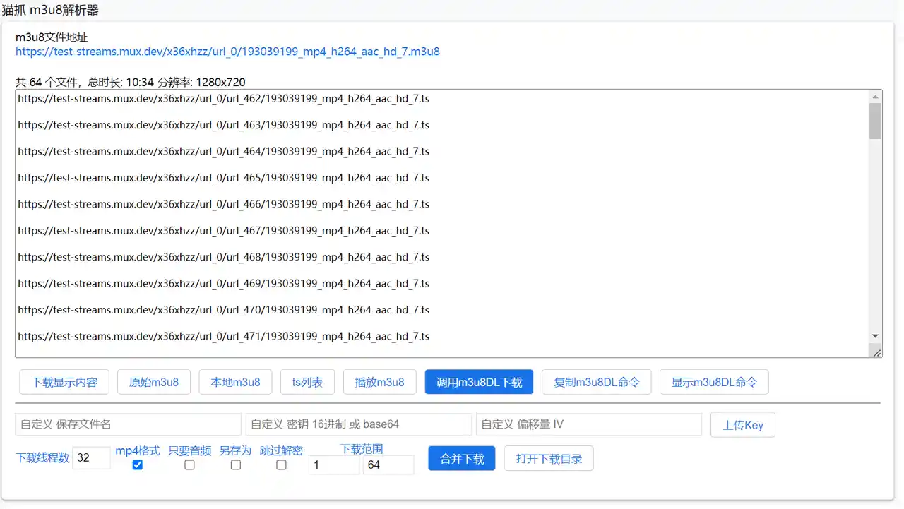 🔧 M3U8 解析合并下载、录制直播。