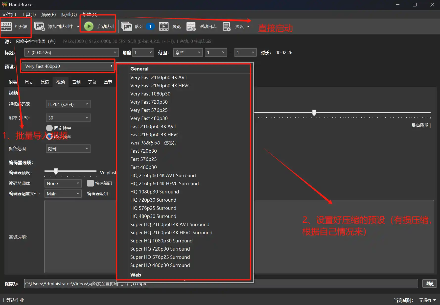 支持多种输入源:DVD、蓝光光盘、常见视频格式,输出格式丰富:MP4、MKV、WebM 等主流容器格式,编码技术支持:H.264、H.265、AV1 等先进视频编码标准