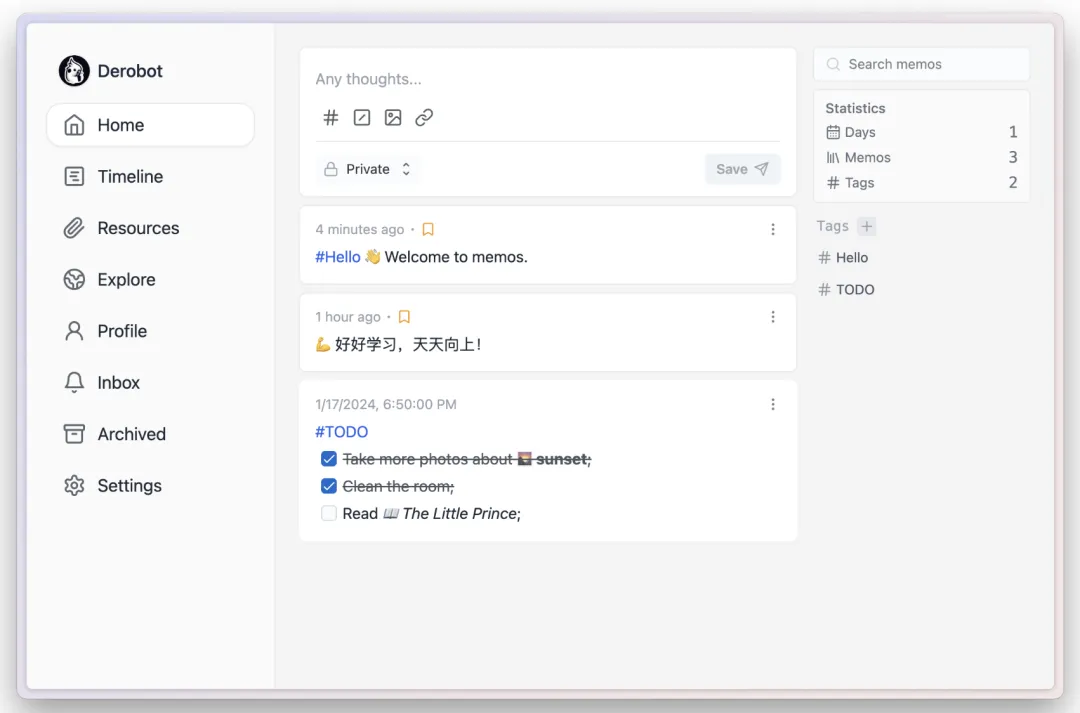 Memos —— 你的私密轻量笔记助手!