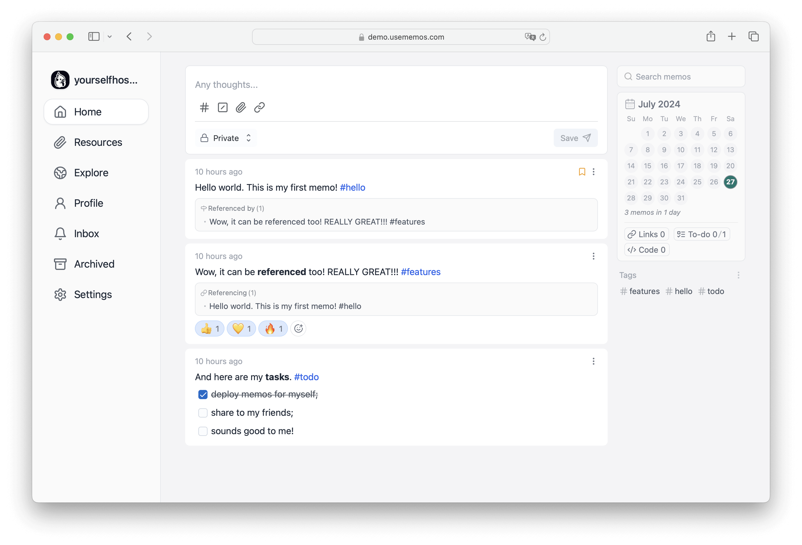 🌐 "Memos" 是一个注重隐私、轻量级的笔记服务,旨在帮助用户轻松捕捉并分享他们的想法。📓