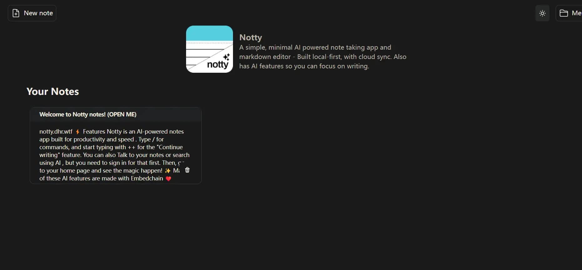 📝Notty 是一个由 AI 驱动的开源笔记应用和强大的 Markdown 编辑器,由 Dhravya 开发。它旨在简化笔记过程并提高效率,不仅是一个简单的笔记工具,而是一个集成了 AI 功能的现代应用,智能地帮助用户管理和编辑笔记。
