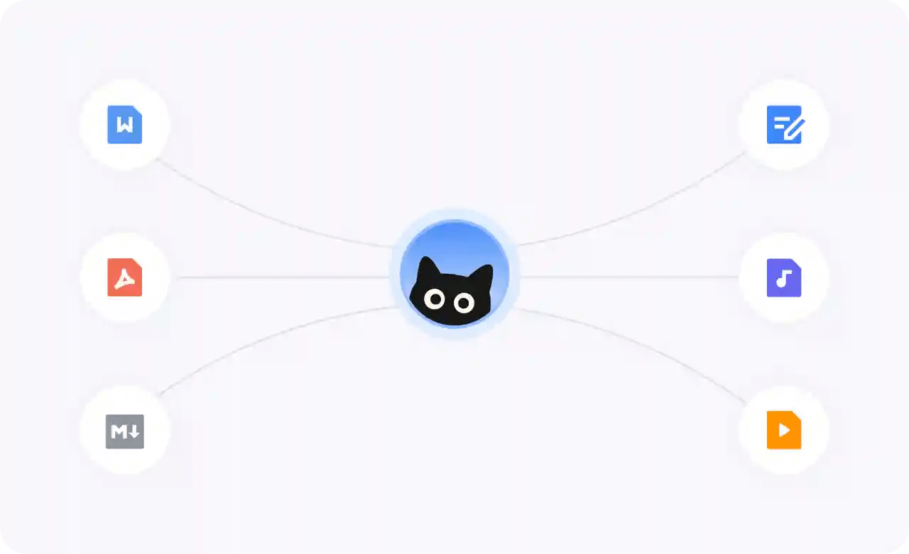 支持解析 PDF、Word、PPT、音视频等文件,直接将其内容转化为可编辑、可搜索的文本。