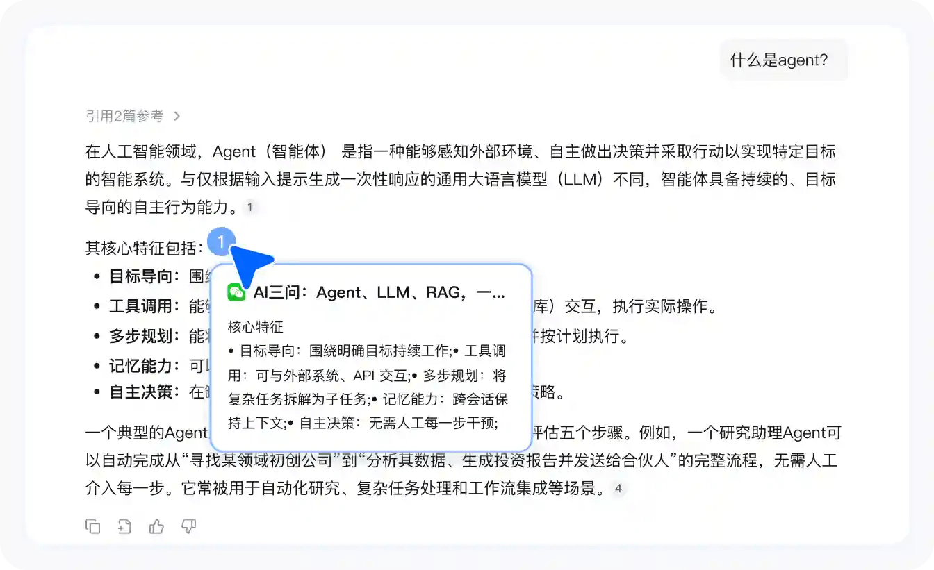 基于您收藏的内容进行智能问答,AI 直接给出答案并支持一键追溯原文,确保信息有据可查。