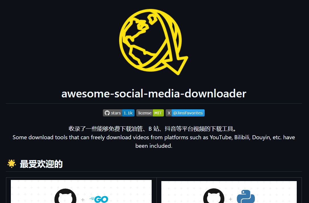 📺 在这个信息爆炸的时代,我们每天都在社交媒体上浏览和享受各种视频内容。DangJin 的开源项目 awesome-social-media-downloader 提供了一种将这些精彩瞬间保存到本地的可能。这个项目是一个收录了多种免费下载工具的集合,这些工具能够让我们从 YouTube、B站、抖音等流行社交平台下载视频。